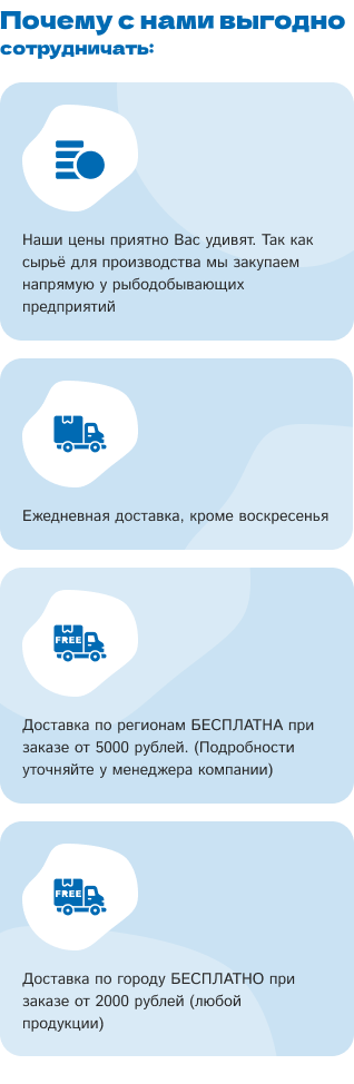 Компания ООО Айсберг основана в 1996 году и успешно занимается продажей мороженой рыбы, морепродуктов, икры, рыбы собственного производства (вяленая, холодного и горячего копчения). В прайс листе вы найдёте более 300 наименований рыбы и рыбной продукции.